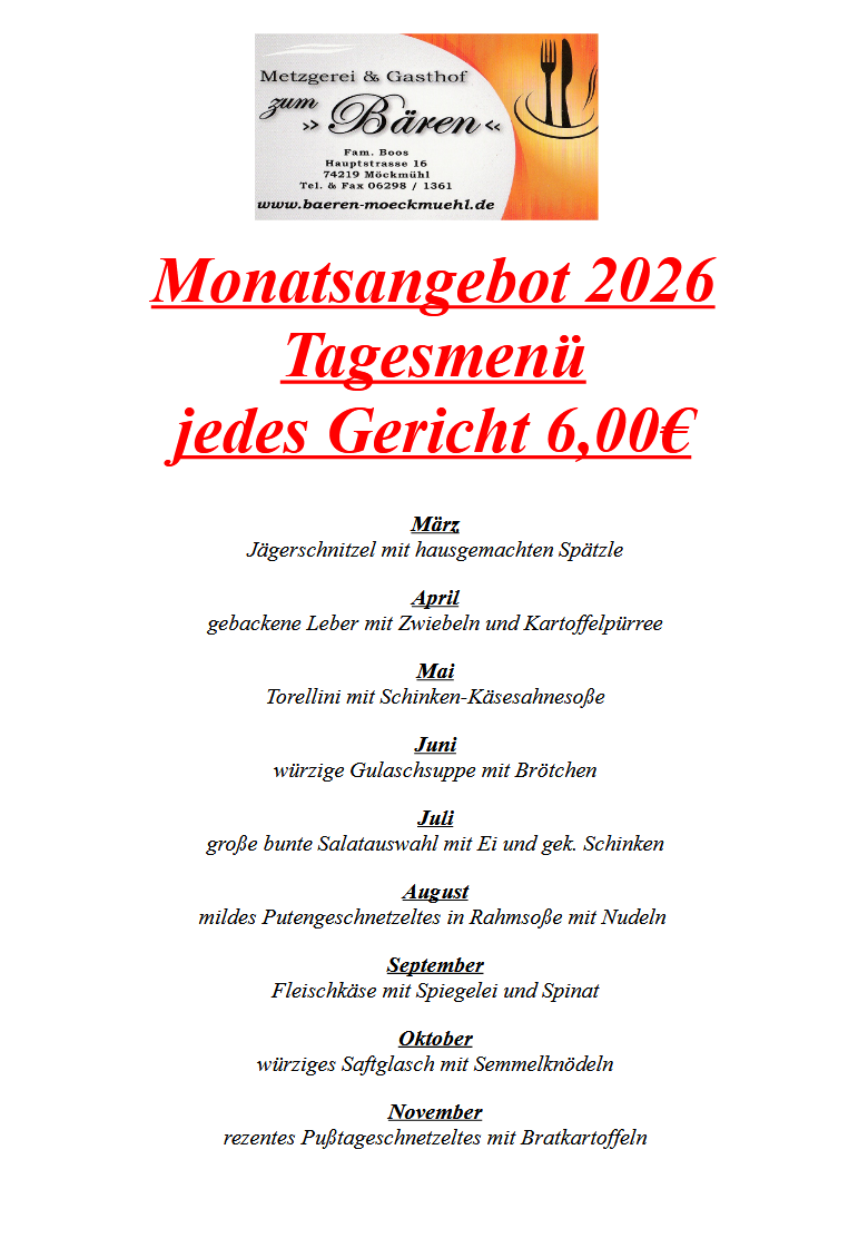 Tageskarte zum Abholen Öffnungszeiten Metzgerei Öffnungszeiten Restaurant
